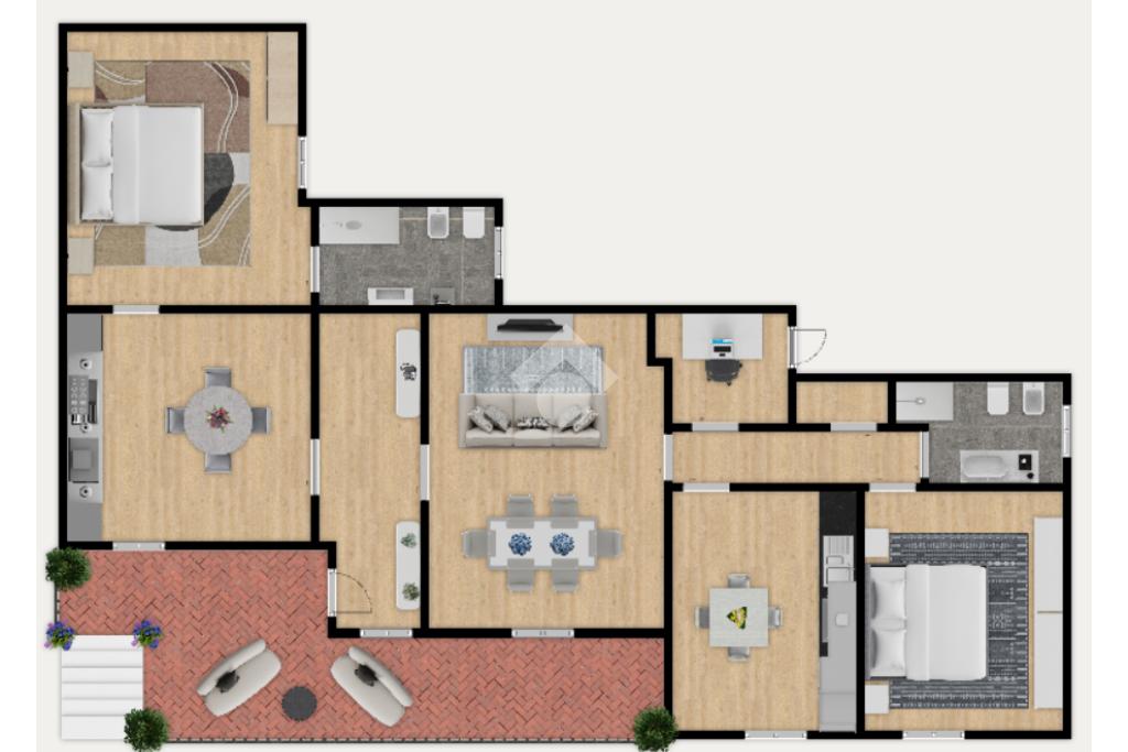 L’abitazione principale si sviluppa interamente sul piano abitativo ed è composta da soggiorno, cucina abitabile, due camere da letto, studio, due bagni e un’ulteriore cucina, offrendo una distribuzione degli ambienti funzionale e versatile. Gli spazi risultano comodi e ben sfruttabili, permettendo diverse possibilità di organizzazione interna. A completare il piano troviamo un terrazzo abitabile, uno spazio ideale da vivere durante la bella stagione per pranzi e cene all’aperto, momenti di relax o semplicemente per godere della tranquillità e dei panorami tipici della campagna umbra. Al piano terra sono presenti diverse cantine, attualmente utilizzate come locali deposito ma con interessanti potenzialità di valorizzazione secondo le proprie necessità. La proprietà dispone inoltre di due garage e di un ulteriore magazzino, elementi che garantiscono grande praticità e offrono spazi aggiuntivi utili per il ricovero di veicoli, attrezzature o materiali.