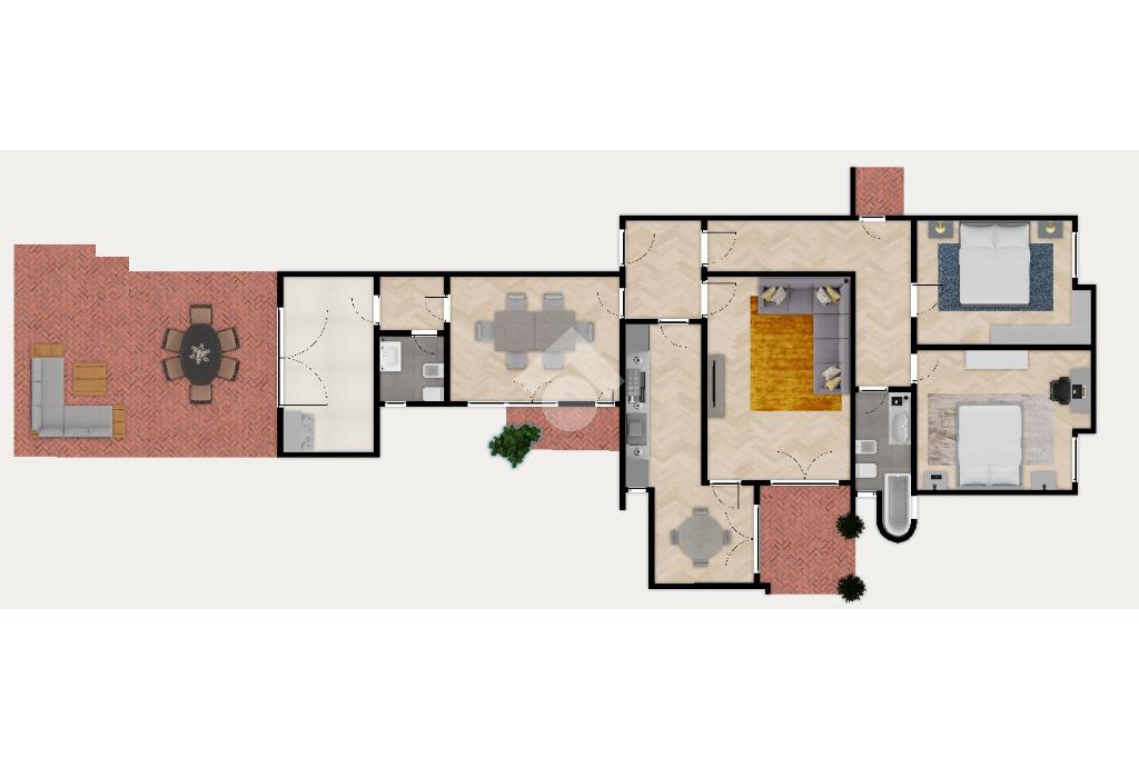 Per chi cerca un' ampia casa per la sua famiglia, ingresso, cucina abitabile e soggiorno con uscita sul terrazzo panoramico, sala da pranzo luminosa con balcone, bagno di servizio, una funzionale veranda fornita di camino e uscita sulla terrazza, zona notte con due ampie camere matrimoniali e un bagno con doccia walk-in finestrato.