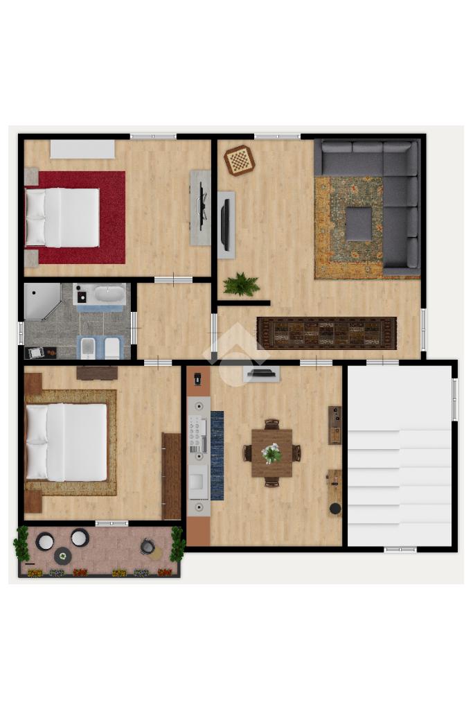 Il soggiorno è luminoso e accogliente, la cucina abitabile offre uno spazio reale per condividere i momenti importanti, mentre le due camere matrimoniali garantiscono comfort e proporzioni generose. Il bagno completa il piano con praticità e ordine.