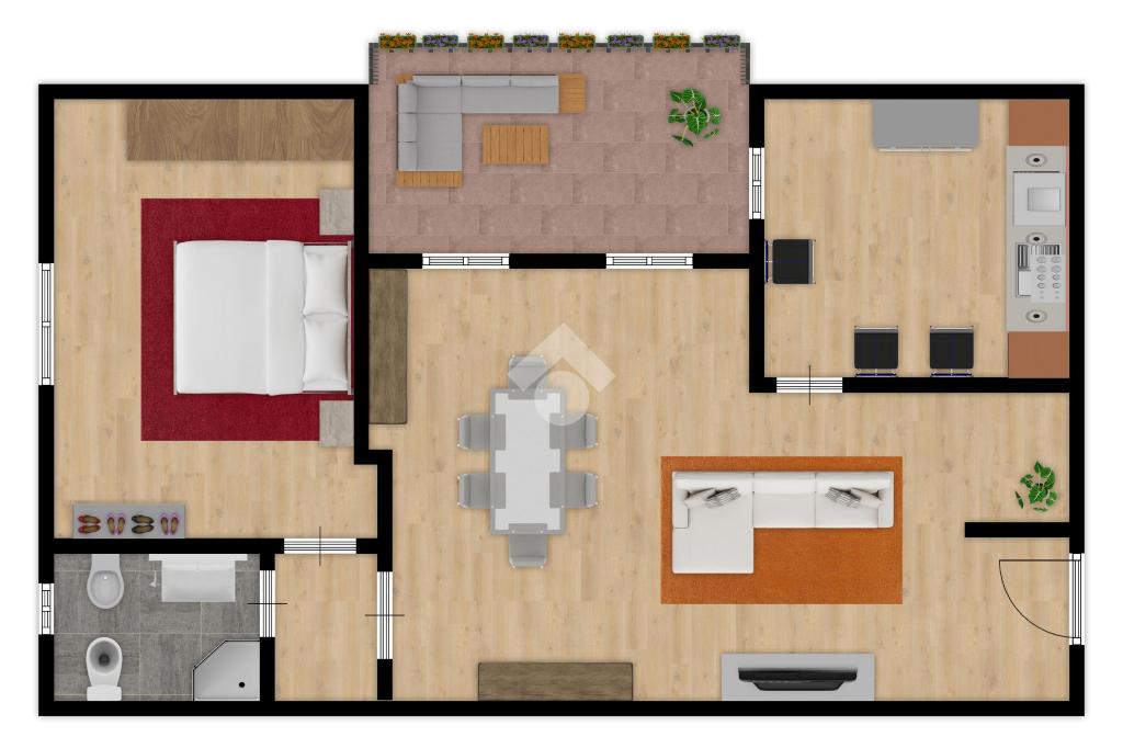 L’ingresso conduce direttamente nella zona giorno, un ambiente ordinato e funzionale. Il soggiorno, luminoso e ben proporzionato, è valorizzato dal parquet che dona continuità agli spazi e conferisce un tocco di eleganza, risultando adatto sia ai momenti di relax che alla convivialità.