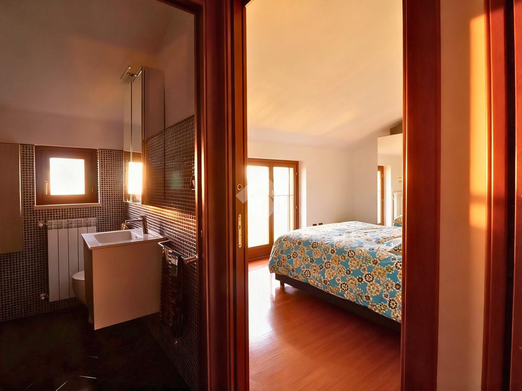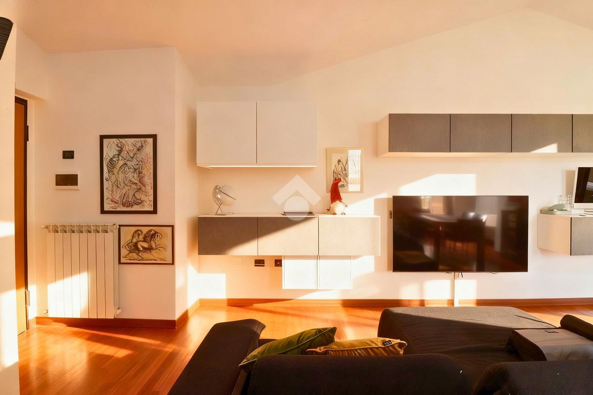 Dal soggiorno si accede al terrazzo verandato, elemento distintivo dell’abitazione: la vetrata panoramica garantisce un’ottima luminosità naturale e permette di usufruire dello spazio in ogni periodo dell’anno, ideale come zona relax, studio o area living aggiuntiva, creando una piacevole continuità tra interno ed esterno.
