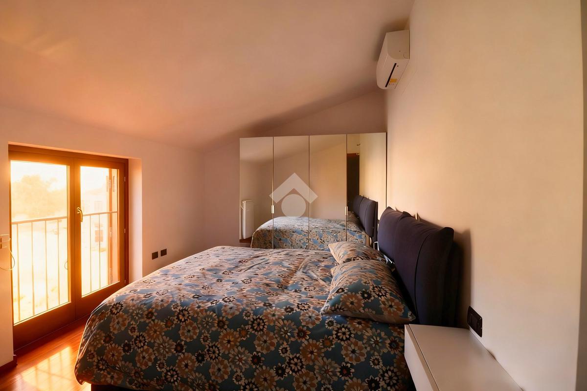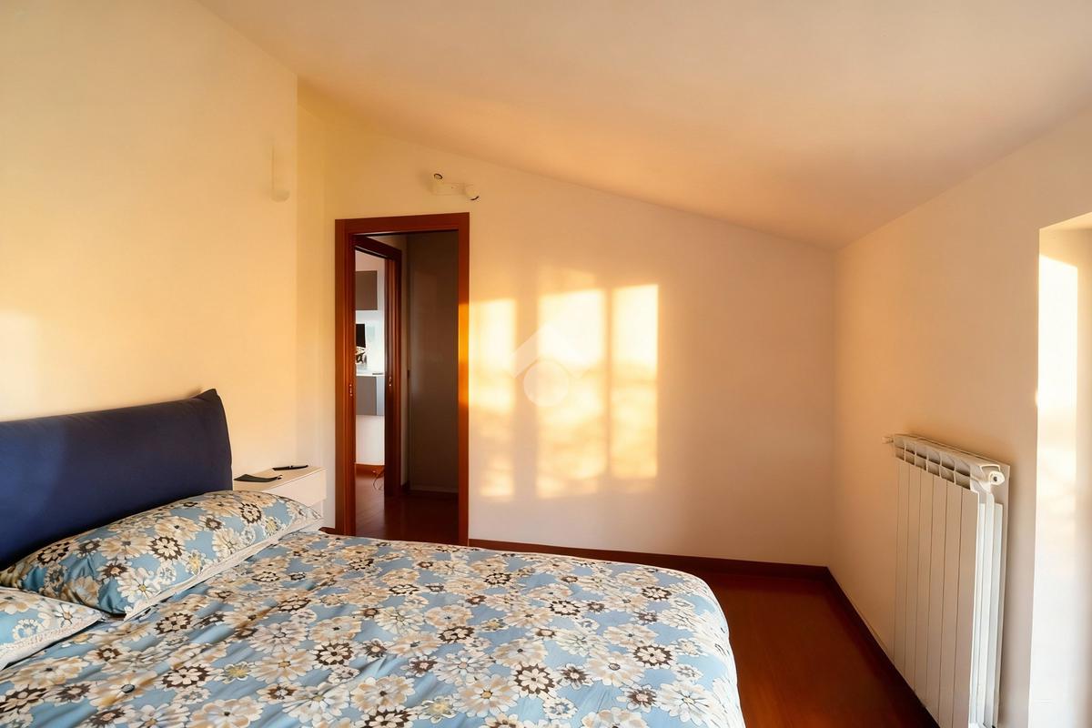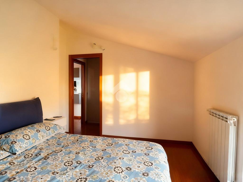 La zona notte è composta da un disimpegno che conduce alla camera matrimoniale, riservata e ben dimensionata. Completa la proprietà il bagno finestrato, luminoso e curato nelle finiture.