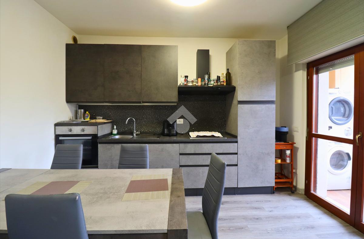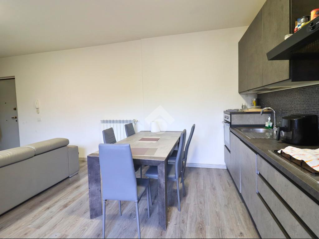 L'ingresso si apre direttamente sulla zona giorno, un ambiente funzionale che integra il soggiorno con angolo cottura, con accesso diretto al terrazzo.