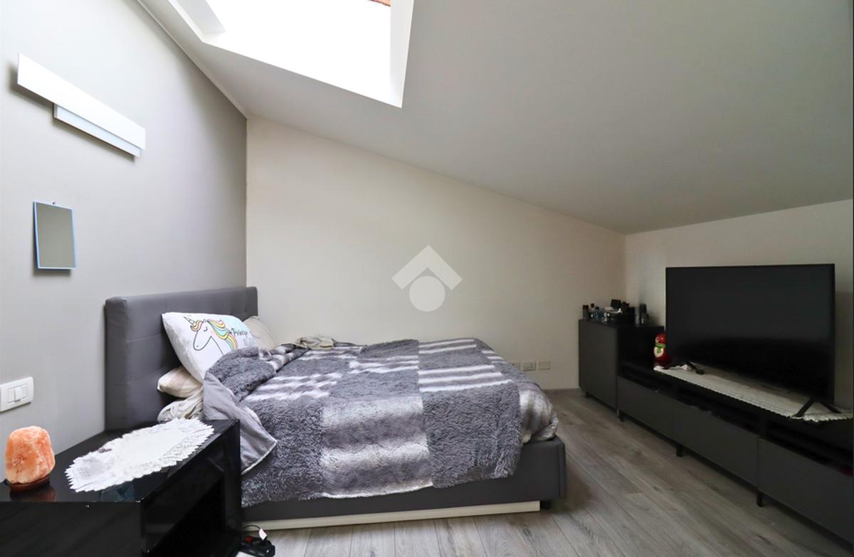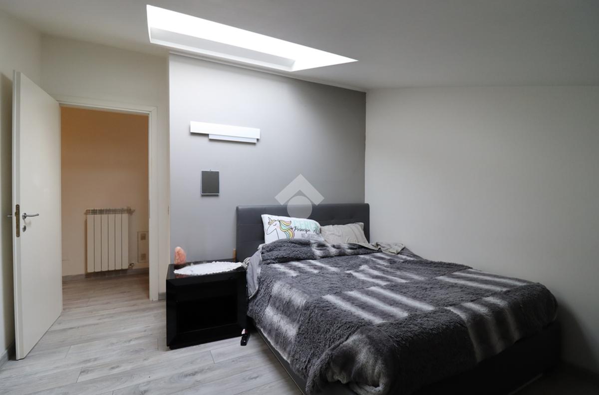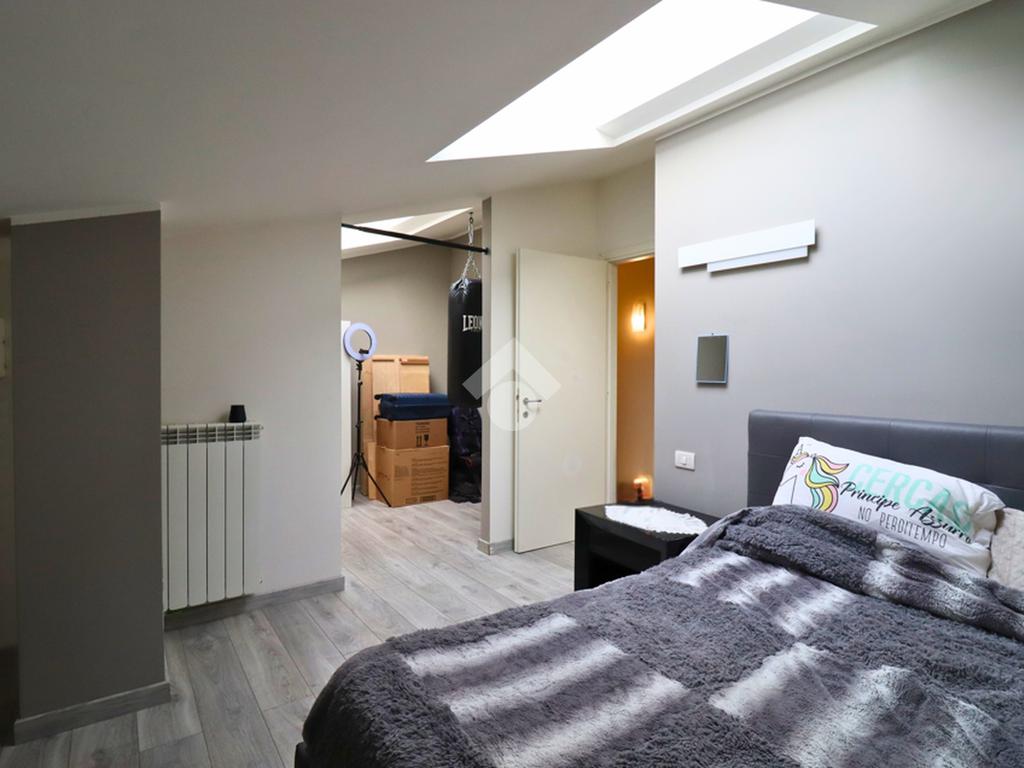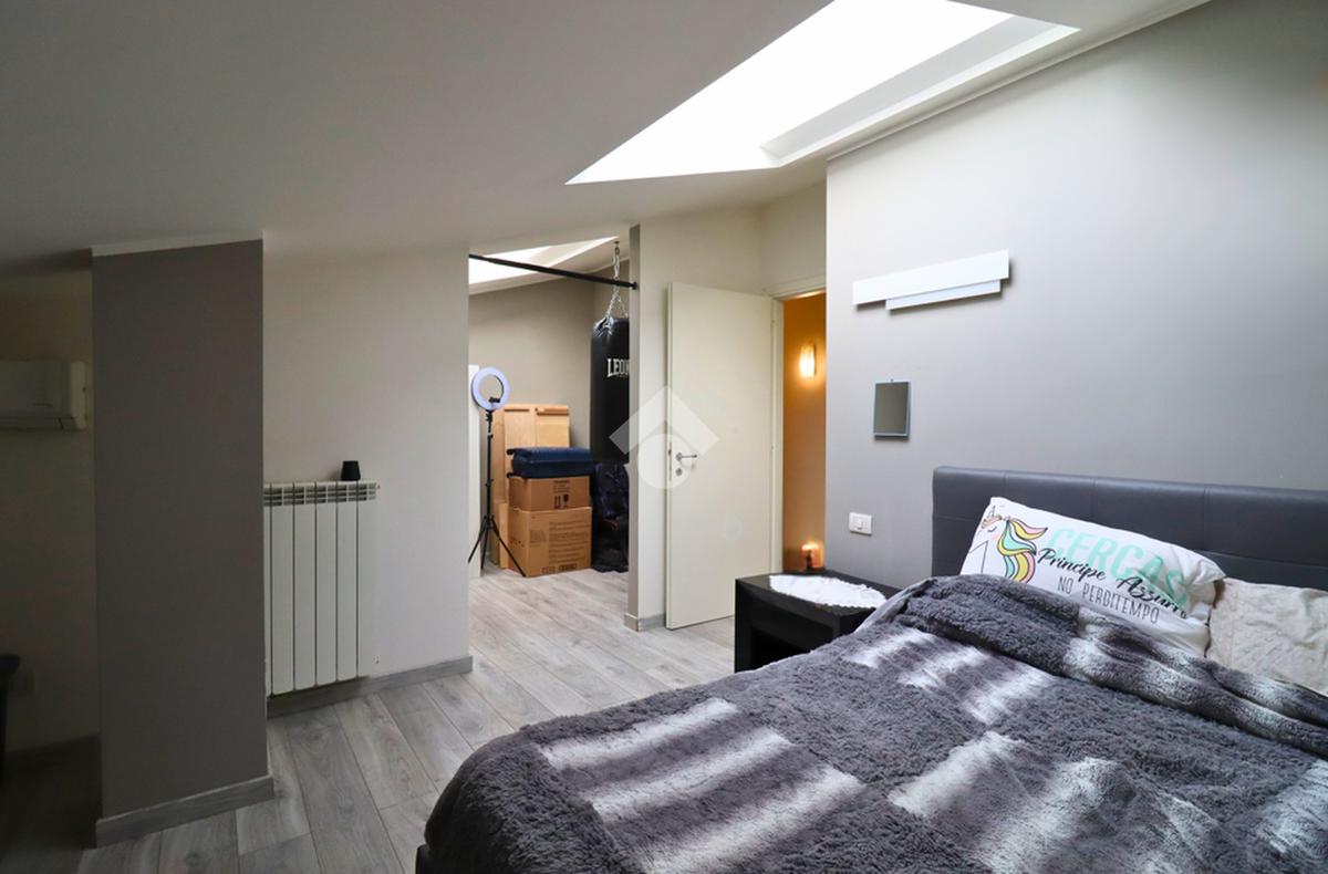 Attraverso le scale interne si accede al piano superiore dedicato alla zona notte. Questo livello è composto da una spaziosa camera matrimoniale, caratterizzata dalla presenza di un lucernario che assicura una splendida illuminazione naturale, e di una seconda camera attualmente adibita a cabina armadio, pensata per una gestione ottimale degli spazi. Il piano è completato dal bagno padronale dotato di vasca.