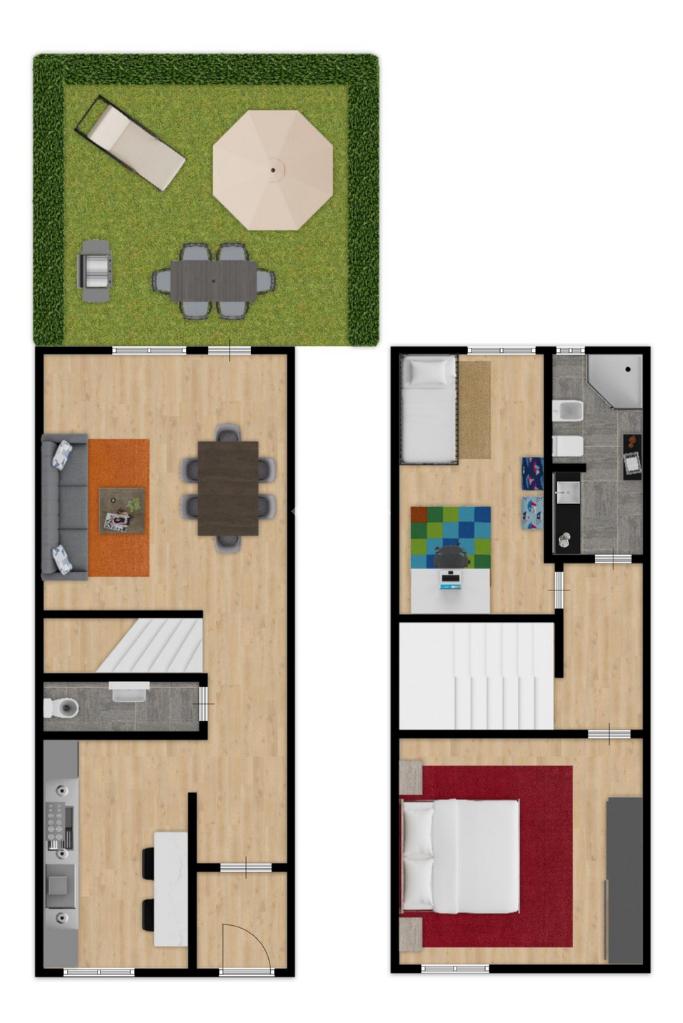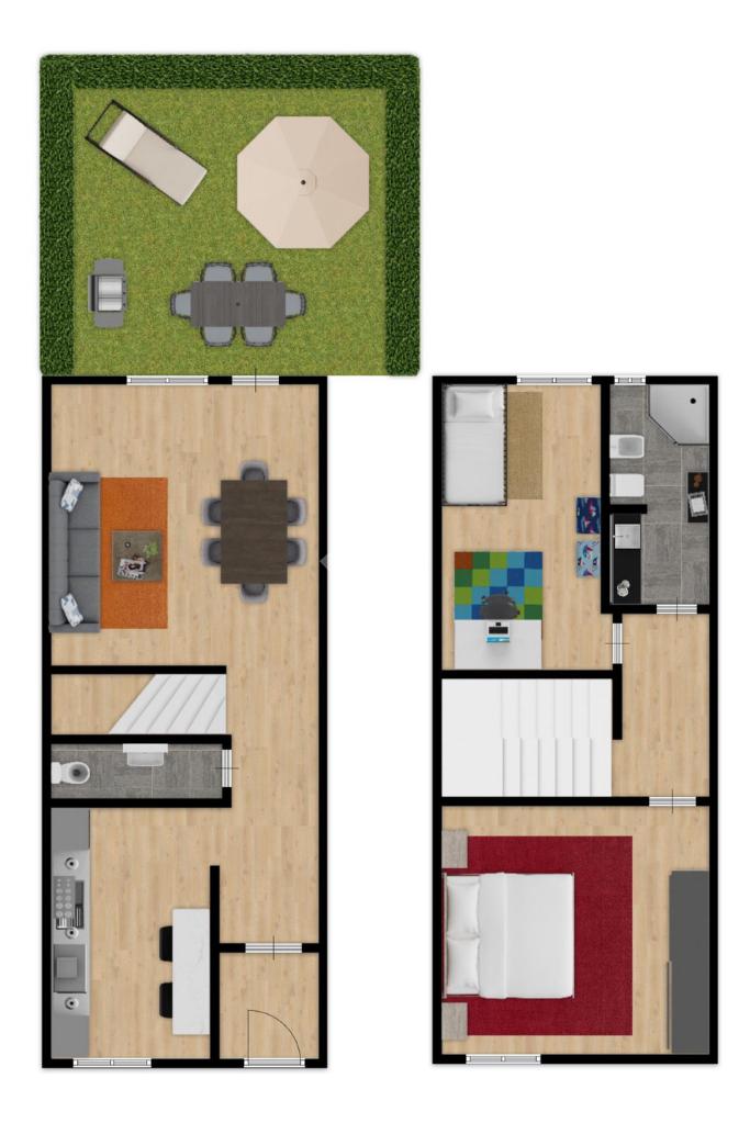 Salendo la scala interna raggiungiamo il primo piano, dedicato alla zona notte, progettata per garantire privacy e tranquillità. Qui troviamo una spaziosa camera matrimoniale, un ambiente confortevole e rilassante, ideale per creare il proprio spazio personale. Accanto si trova una cameretta, perfetta come stanza per bambini, studio, o camera per gli ospiti, in base alle esigenze della famiglia. Completa il piano un bagno finestrato, luminoso e ben ventilato, che garantisce comfort e praticità nella vita quotidiana.