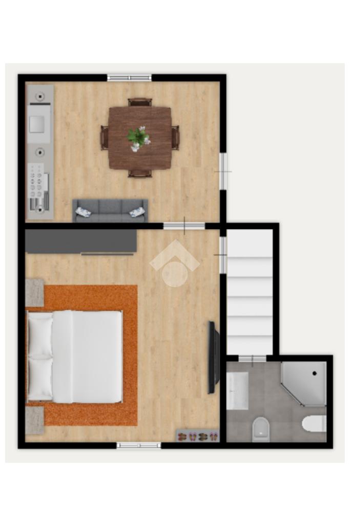 L’appartamento si compone di un soggiorno con angolo cottura, una camera matrimoniale ed un bagno.