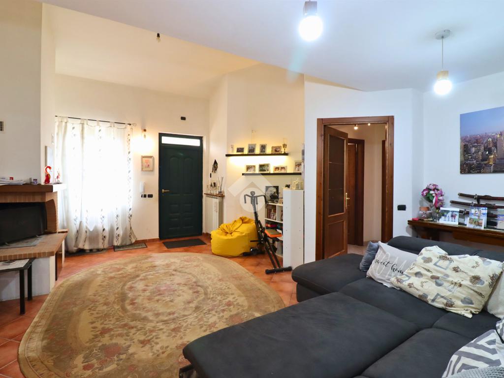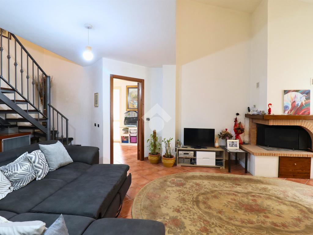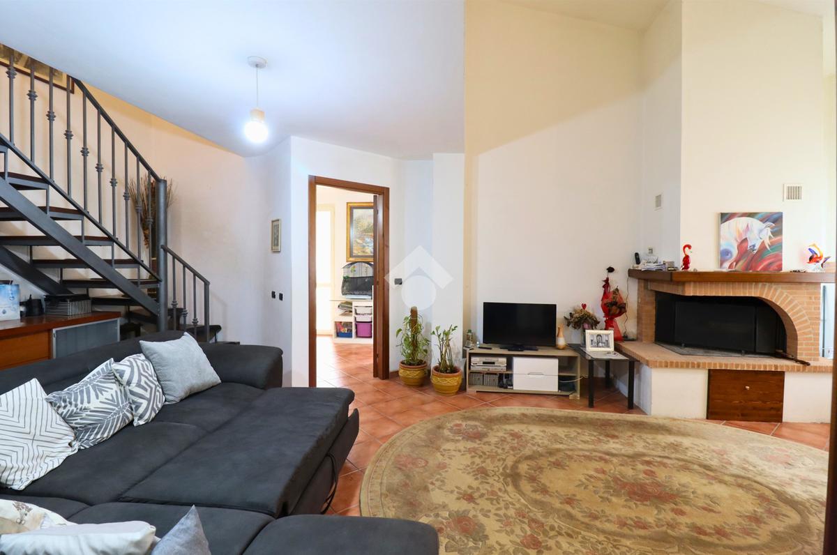 Dal portone d'ingresso ci accoglie direttamente il soggiorno con un bellissimo camino con bocchette di aria calda ed un comodo ripostiglio, proseguendo troviamo una grande cucina abitabile con accesso al terrazzo.