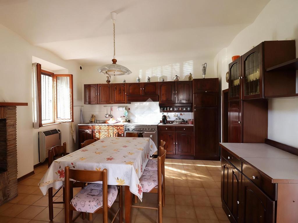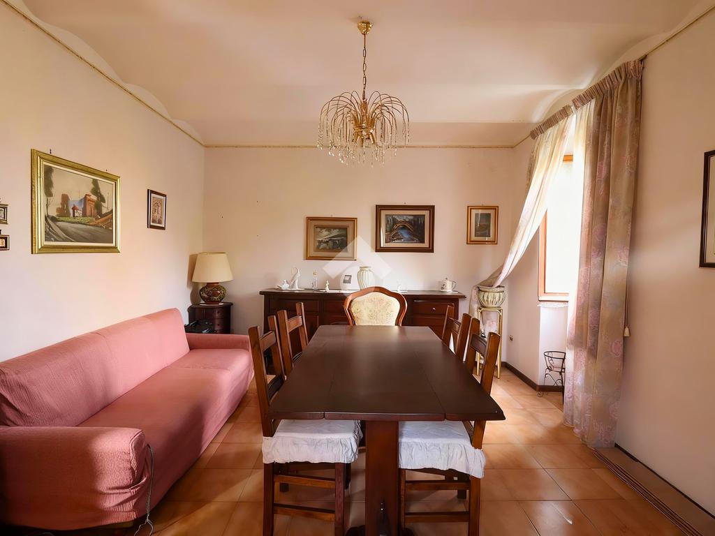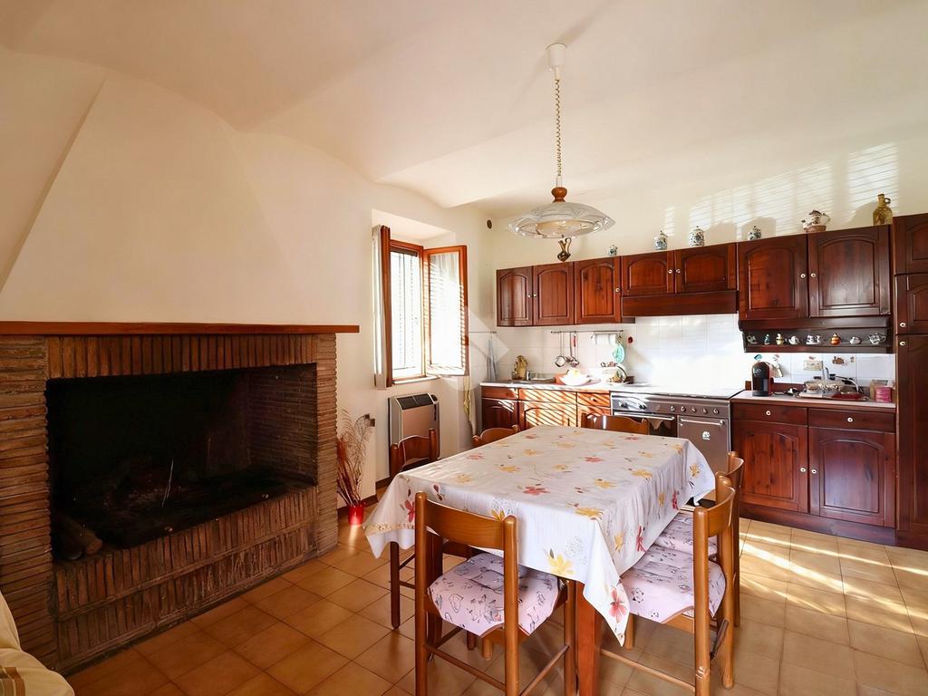Al piano principale troviamo, sulla sinistra, una cucina abitabile impreziosita da un grande camino, ambiente caldo e accogliente, oltre a un pratico vano sottoscala utilizzabile come spazio di servizio. Sul lato destro è presente una sala da pranzo ben proporzionata, ideale per momenti conviviali in famiglia.