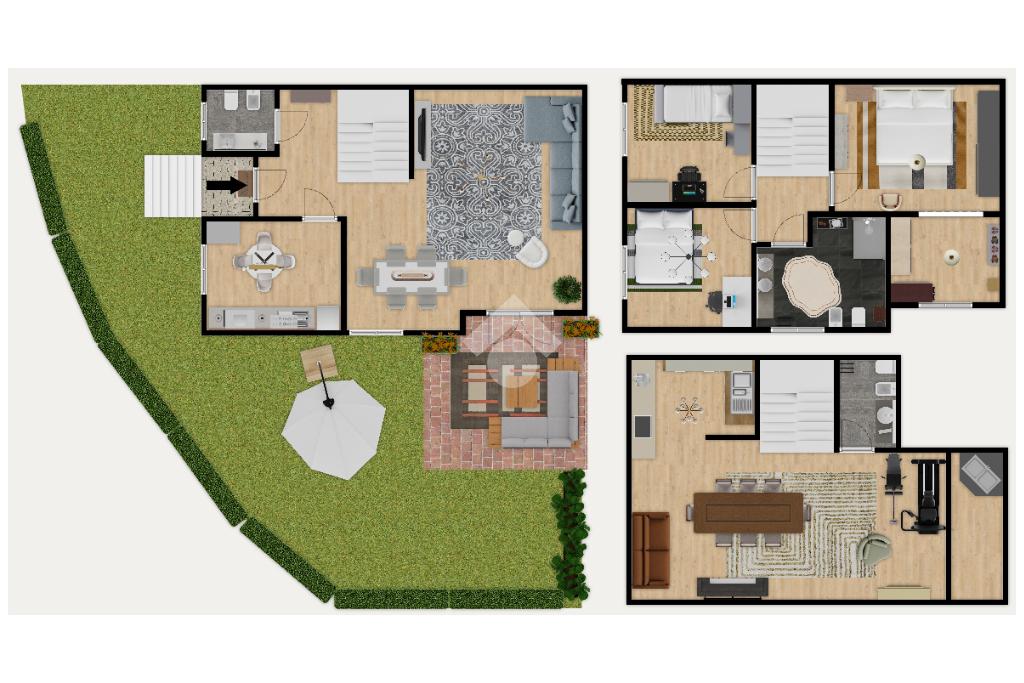 Il cuore emotivo della casa è la taverna: uno spazio che seduce per atmosfera e versatilità. Il camino amplifica il senso di casa, l’angolo cottura separato permette di vivere l’ambiente come una vera seconda zona indipendente, e il bagno dedicato rende tutto ancora più funzionale. Dal garage con accesso diretto alla taverna fino alla cantina, ogni elemento è pensato per rendere la gestione quotidiana più semplice, fluida, intuitiva.