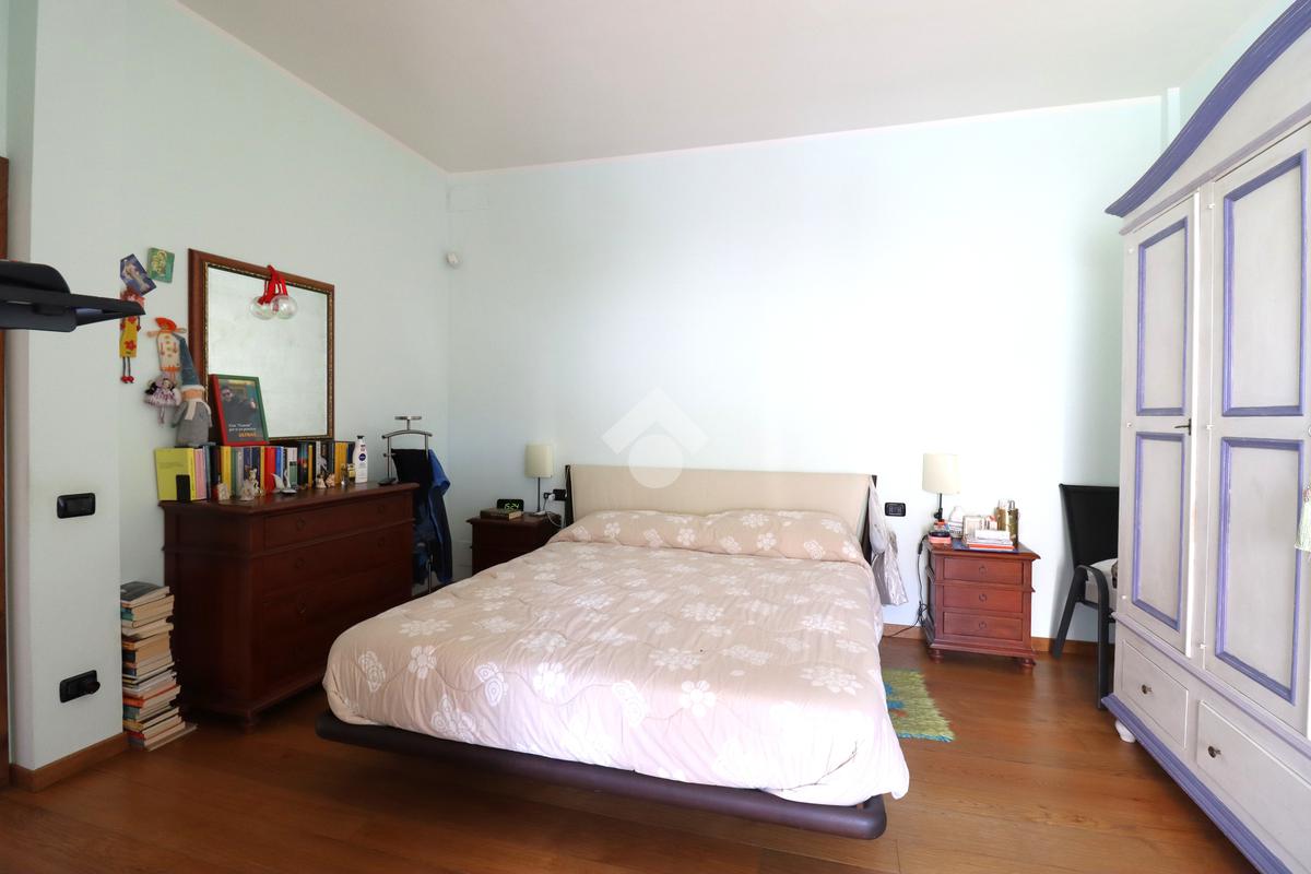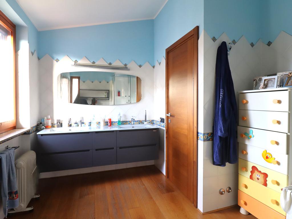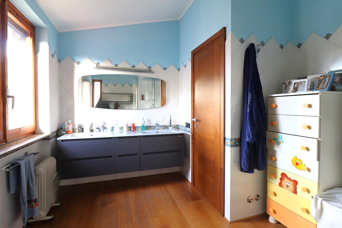 La zona notte al piano superiore è un’oasi privata: tre camere luminose, progettate per offrire silenzio, spazio e intimità, ed un bagno elegante che porta con sé la stessa cura dei dettagli. Il parquet in tutta la casa aggiunge morbidezza, eleganza ed un tocco di prestigio.