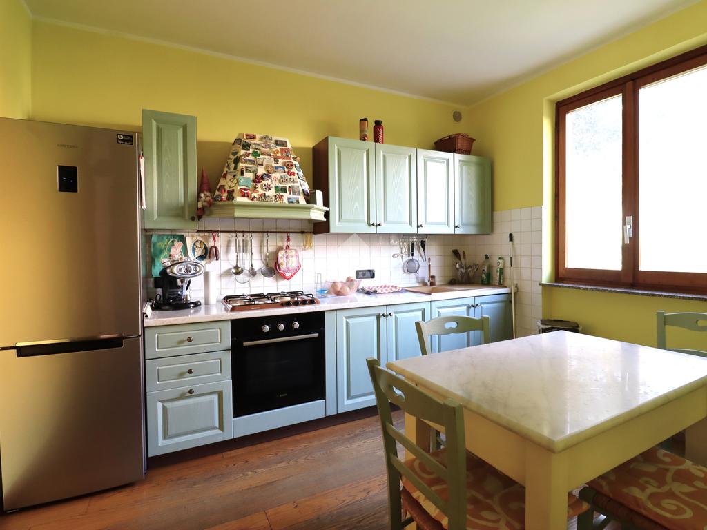 Al piano terra, il soggiorno e la cucina dialogano in modo armonico, creando un’area giorno che invita a rilassarsi, condividere, respirare un ritmo domestico più leggero. Il riscaldamento a pavimento avvolge ogni passo con un calore uniforme, trasformando il comfort in una sensazione fisica immediata. Il bagno di servizio completa la praticità del livello.