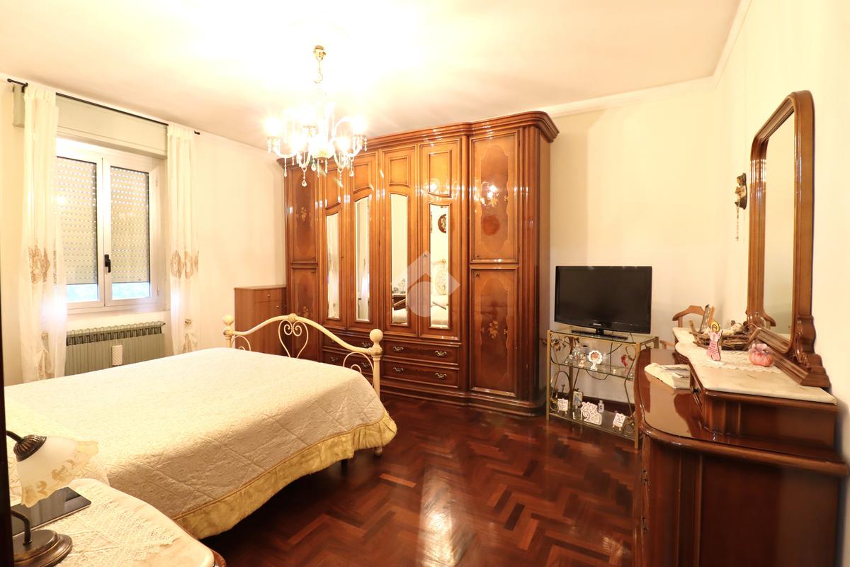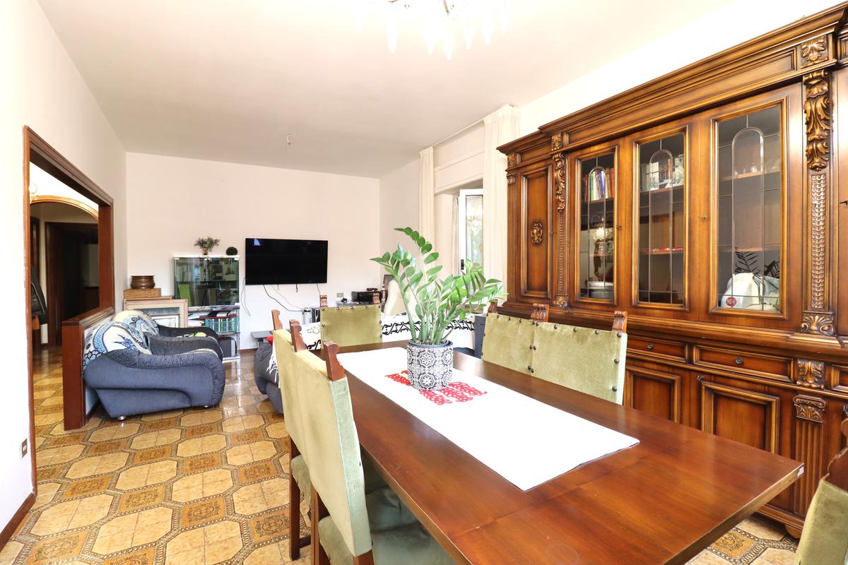 Salendo al piano primo, la seconda unità mantiene la stessa impronta di ampiezza. Un grande salone, anch’esso collegato al terrazzo, crea una zona giorno elegante e luminosa. La cucina abitabile permette di vivere questo piano con totale autonomia, mentre i due bagni assicurano una gestione comoda degli spazi. Completano la zona notte le tre camere.