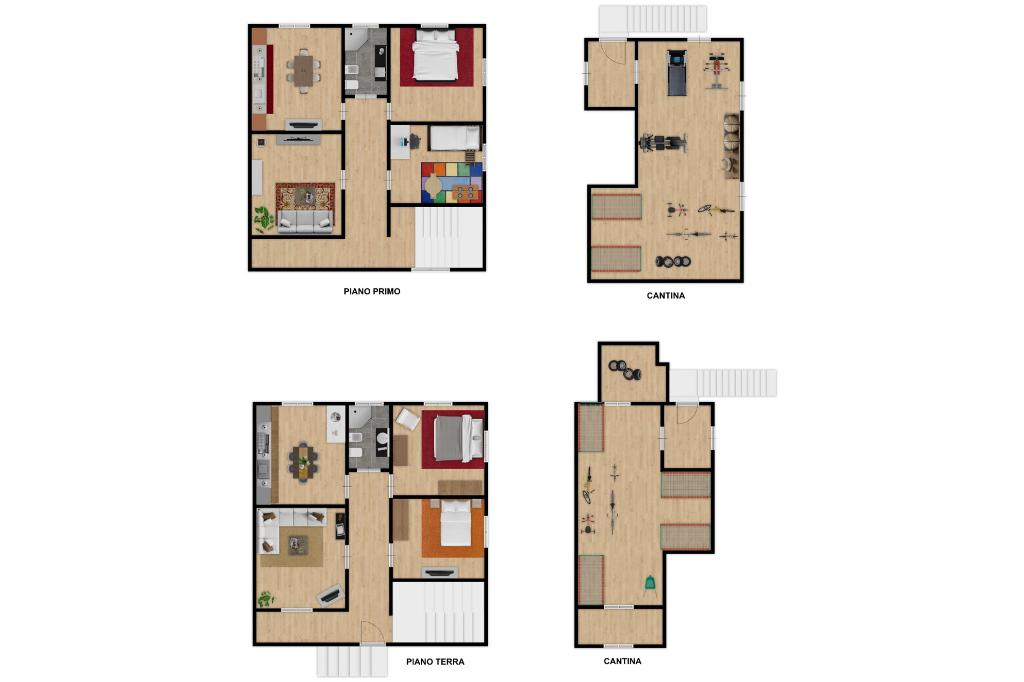Al piano terra troviamo inoltre una grande cantina, un garage e ulteriori spazi versatili, perfetti come area hobby, deposito o zona relax.