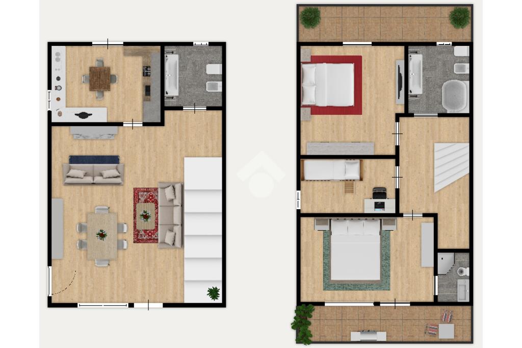 La zona notte al primo piano è composta da una camera matrimoniale con accesso al terrazzo, una cameretta adattabile alle proprie esigenze, un bagno finestrato con la vasca ed una camera matrimoniale con il bagno privato con la doccia e con accesso ad un terrazzo.
