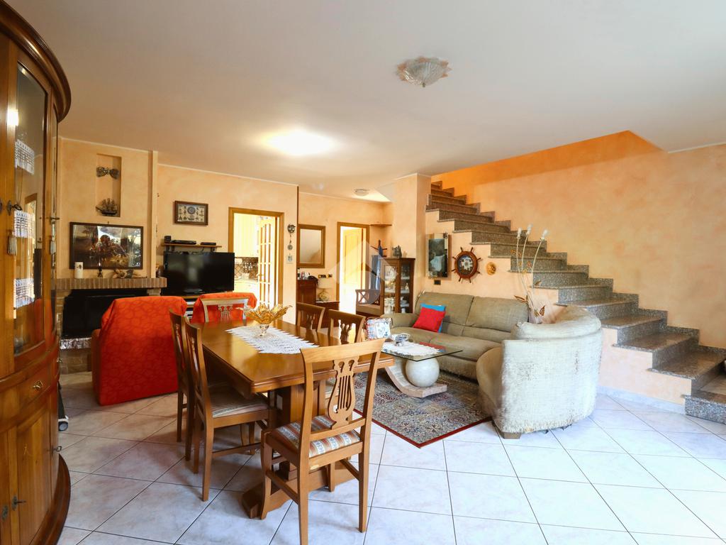 Al piano terra, la zona giorno si apre su un luminoso soggiorno con il camino, perfetto per accogliere famiglia e ospiti, con una cucina separata funzionale e ben organizzata da cui si ha accesso ad un terrazzo. Completa il livello un comodo bagno di servizio finestrato, pratico per la vita quotidiana.