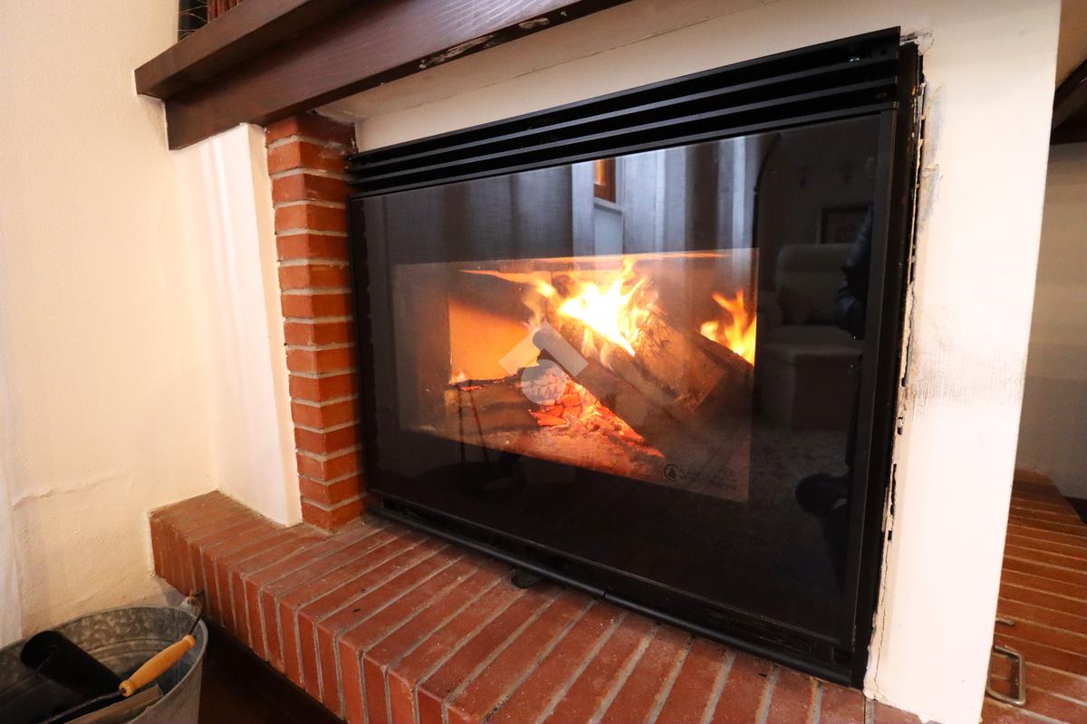 Entrando al piano terra ci accoglie un luminoso ed ampio soggiorno con il termocamino che emana calore nella stanza, la sala da pranzo con il camino e l’angolo cottura separato dalla sala; da questa zona si accede alla parte esterna dell’abitazione con il camino ed il forno a legna.